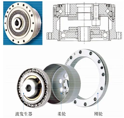 如圖12所示,諧波減速器軸承包括用于剛輪的薄壁交叉圓柱滾子軸承和用于柔輪的柔性軸承。