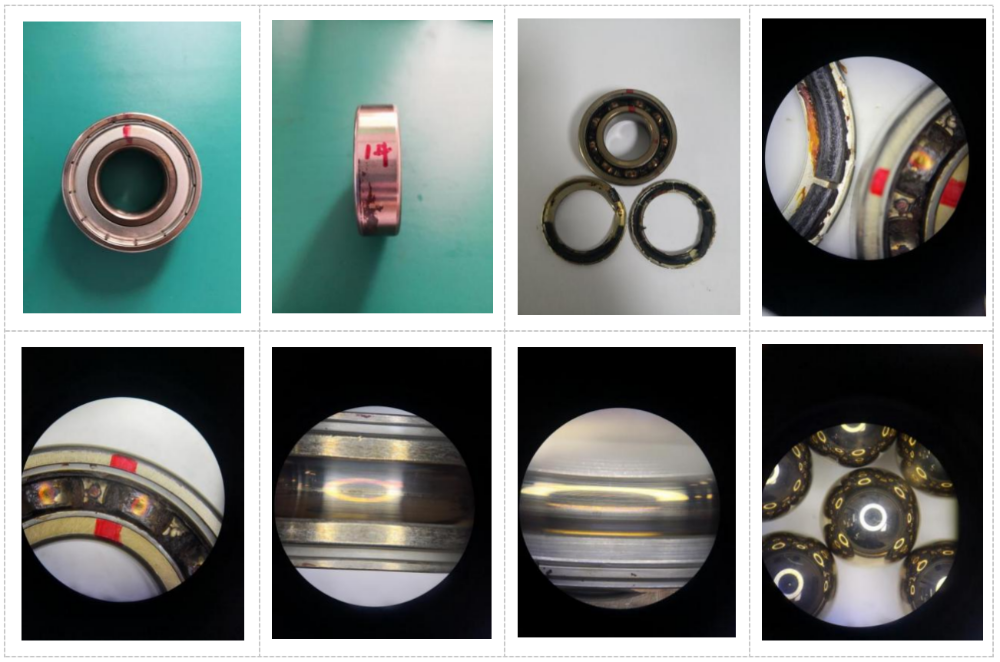 試驗(yàn)設(shè)備一般應(yīng)連續(xù)運(yùn)轉(zhuǎn),對(duì)試驗(yàn)(載荷、轉(zhuǎn)速、振動(dòng)、電流、溫度、溫升)進(jìn)行全程監(jiān)測,設(shè)備本身各參數(shù)控制在要求范圍內(nèi),對(duì)測試設(shè)備、測試軸承進(jìn)行保護(hù),防止測試過程中出現(xiàn)意外損壞設(shè)備,也可把軸承的失效控制在最初始階段,有利于失效原因分析,提出改進(jìn)方向;